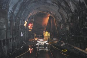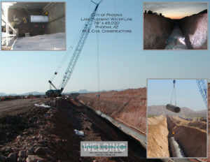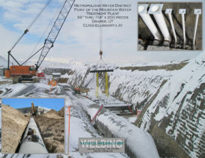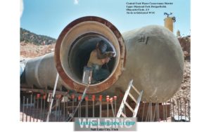Install, assemble and field welding 153″ dia x 1.25″ and 120″ dia. x 0.625 to 0.875″ steel pipeline in sections of 7 mile hard rock tunnel including steel vertical shaft liners up to 450′ deep. 1st Phase Completed December 2001