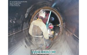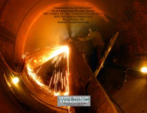 Install, Fit and Weld 144″ Diameter x .750″ x 500′ Penstock within 156″ Existing Tunnel under a dam. Includes design/use of pipe carrier.
