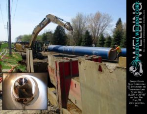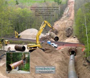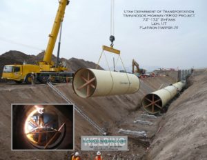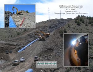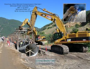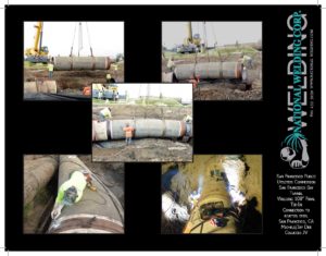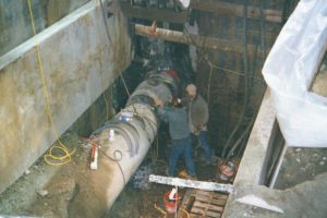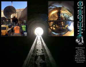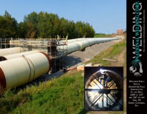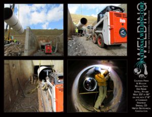 Fit and Weld 1200’ of 114″ diameter x .5” thick bell and spigot steel pipe. Install, fit, and weld 300’ of 114” butt welded steel pipe in tunnel.
