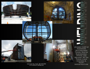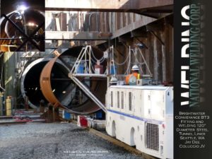 Installed, fit and field welding 156″ dia x 1.50″ and 144″ dia x 1.00″ pipeline in sections of 5 mile long hard rock tunnel including steel vertical shaft liners up to 400′ deep.
