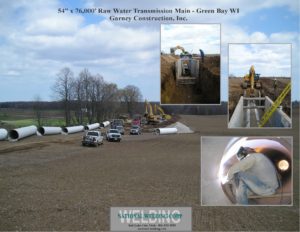 Fitting and Welding 54″ x 76,000′ steel water transmission pipeline including 1,542 pipe joints total.
