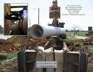 Fitting and Welding steel pipe water transmission line 42″ x 19,000′. Approx 488 joints, plus Butt Straps.